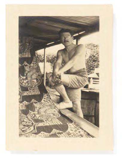 The Archives reflect significant shifts in textile technology and practice taking place in Melbourne since the 1930s. A photograph of British-born artist Michael O’Connell from this period, shows him kneeling outdoors, working with a chisel and wood block at his Beaumaris studio. O’Connell is surrounded by materials for textile printing – a roller, ink-stained bowls, blotting cloth, and a large linocut – as well as bolts of fabric printed in his distinctive style. Behind him, a domestic table setting is visible through an open door. Initially taught linoleum cutting and printing by his wifeto-be, Ella Moody, O’Connell went on to establish himself as a leading textile designer, generating local demand for hand-printed original art on high-quality textiles and forming distribution relationships with a number of Melbourne department stores before returning to England in 1937. Throughout this time O’Connell worked from a home studio and the photograph is part of a broader picture of textile practices as a primarily craft-based activity in Melbourne at this time.