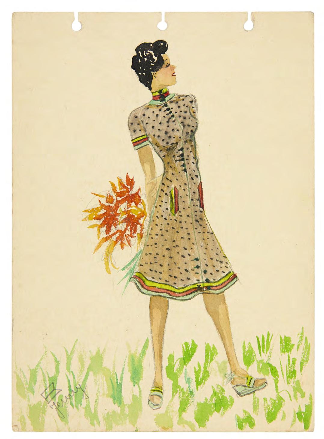 Fashion illustration, Vienna, 1930s, illustrator and designer Jenny de Nijs. Gift of Romaine de Nijs 2006.
