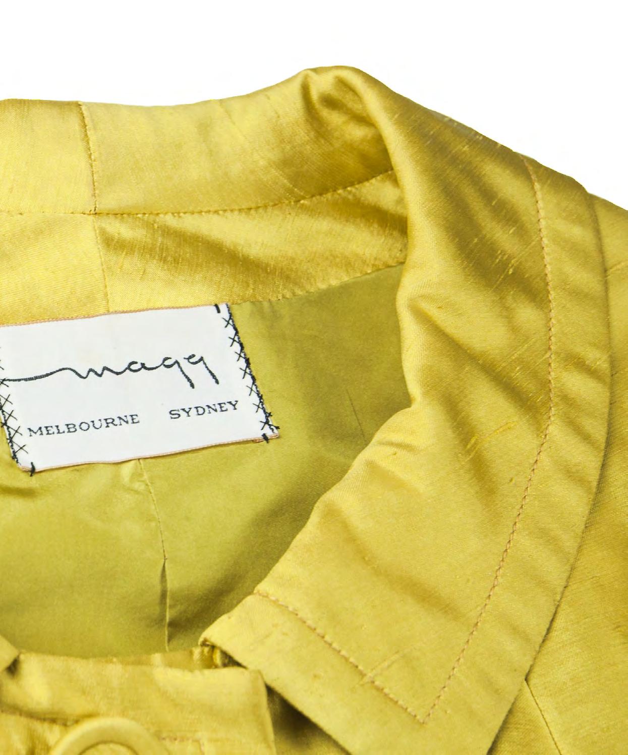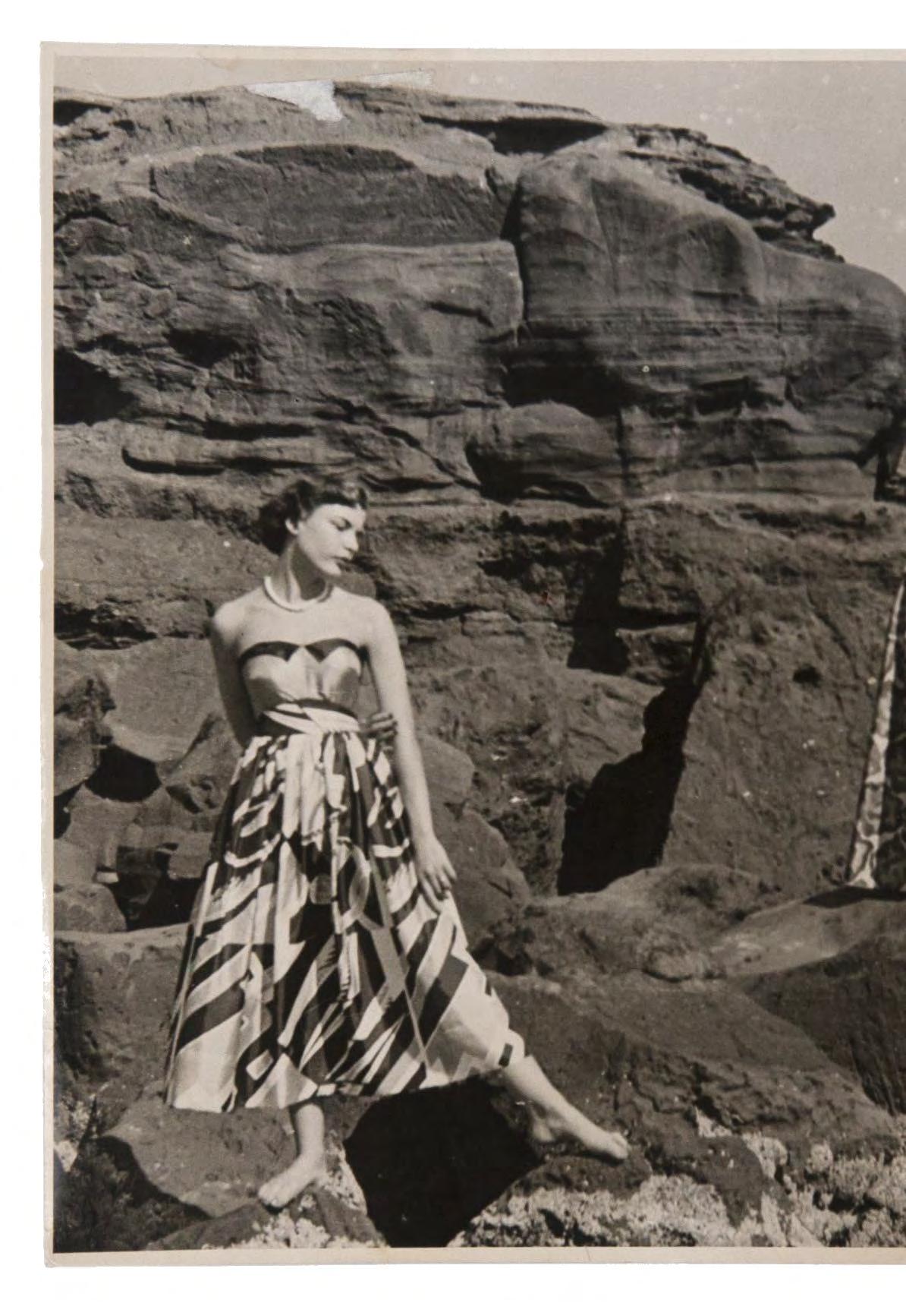 and takes the form of six themes: Colour, Enterprise, Illustration, Location, Manufacturing and Publics. Regina Lee Blaszczyk explored how artificial dyes and pigments enabled innovations in automotive, fashion and interior design in The Color Revolution (2012), balancing the art of colour selection and forecasting with the applied science of ink and material chemistry.6 These experiments and tensions are evident in the shift from craft to industrial production in Australia, such as the muted palette of indigenous flora designed by Beverley Knox in the 1950s to the ebullient Maggs yellow coat worn by Frances Burke and the bright and bold patterns embraced by Zab Design in the 1970s. Before the term ‘dopamine dressing’ was coined, American textile designer Dorothy Liebes described colour as a “magic elixir,” advising there are no bad colours, only bad colour combinations.7