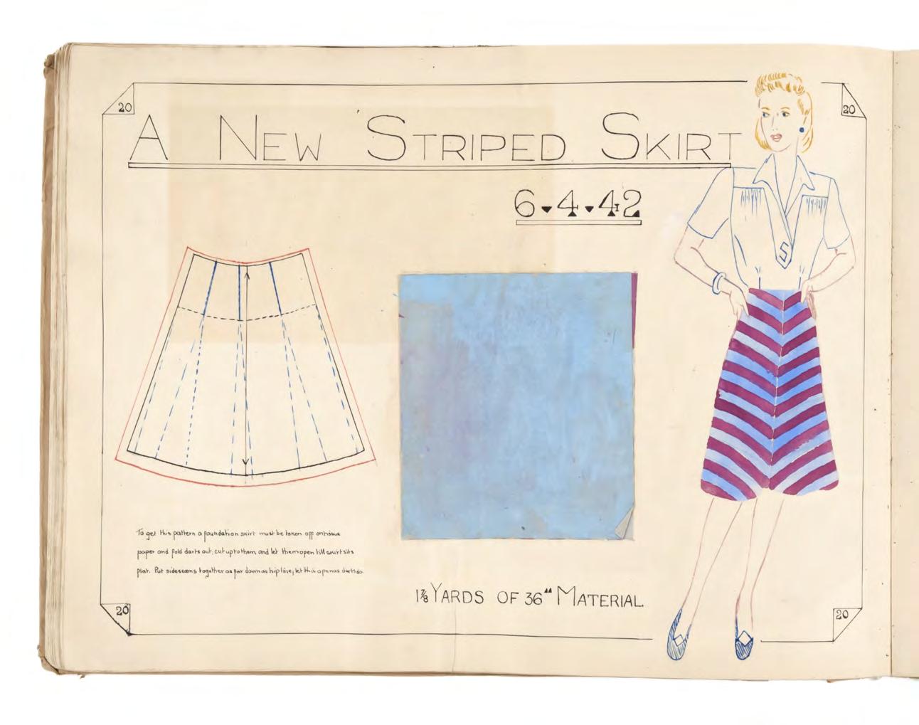 Opposite Detail of a 3rd-year Cutting Book (1, 1942), student Lorna Clarke, Emily McPherson College. Donated by rmit University Library, 1999.
