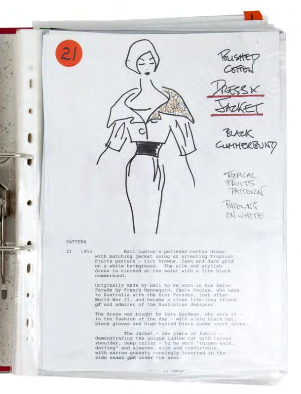Practice processes are a great concern of design education yet rarely a focus for archive collections. Over the 30 years since the Frances Burke collection was acquired, the rda’s collection has grown exponentially to include work from the 1930s through to the 21st century. Today the collection comprises 52 fashion archives and 28 textile archives, and there are currently 7595 object records listed on the rda’s collection catalogue, many not yet digitised. All focus on how design is undertaken and reveal problem-solving and learning as actions embedded in processes of practicing (designing, collaborating, marketing, sourcing, testing, making).