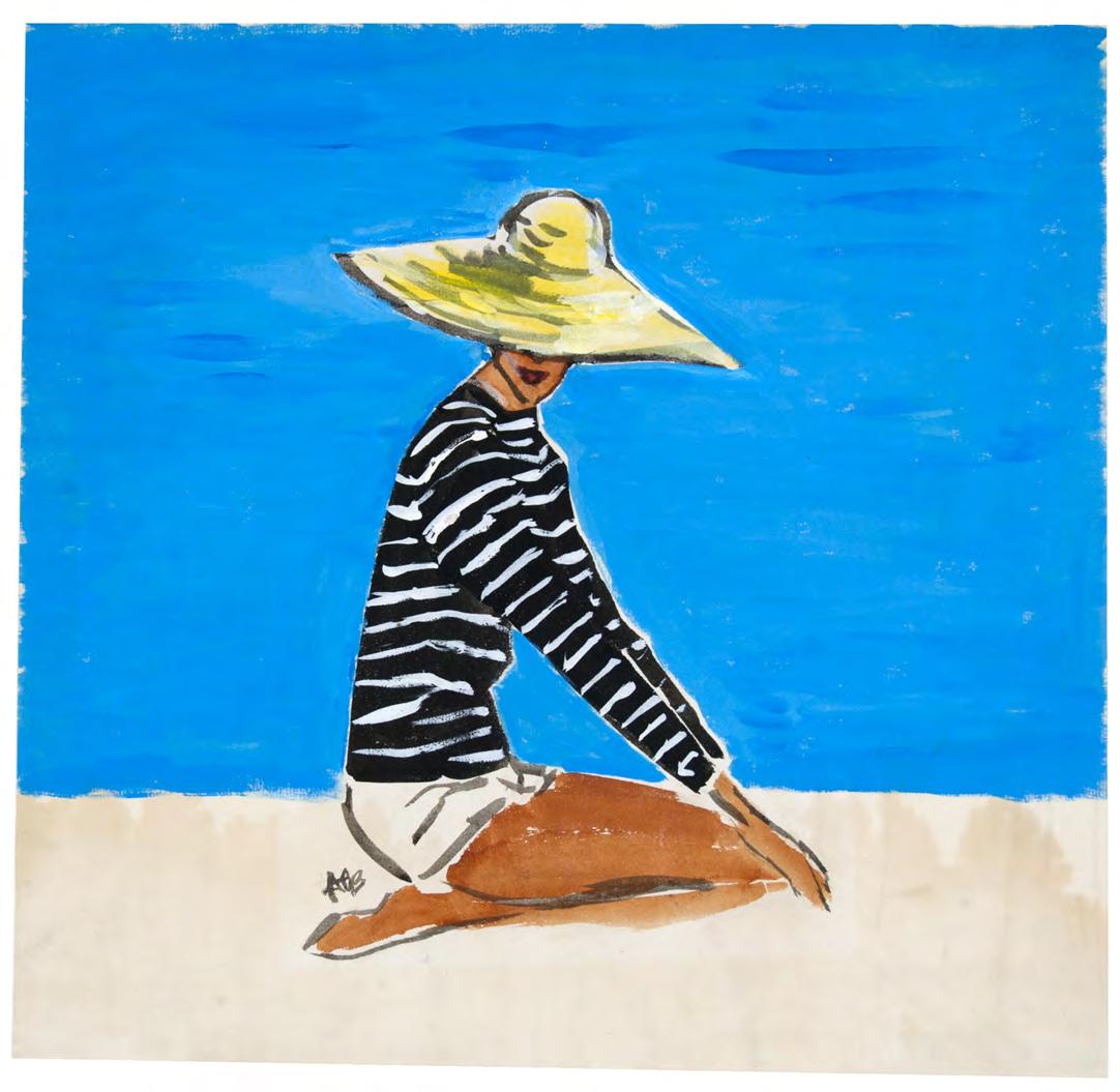 Models on the beach during the filming of Language of Design, c. 1951, unknown photographer, fashion house Prestige Fabrics. Gift of Gerard Herbst 1995.