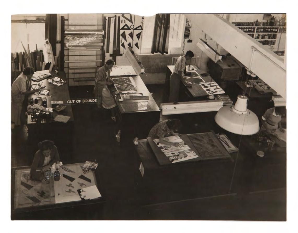 Opposite Bottom Textile designers working at Prestige Fabrics, Brunswick, c. 1950, unknown photographer. Gift of Gerard Herbst 1994.
