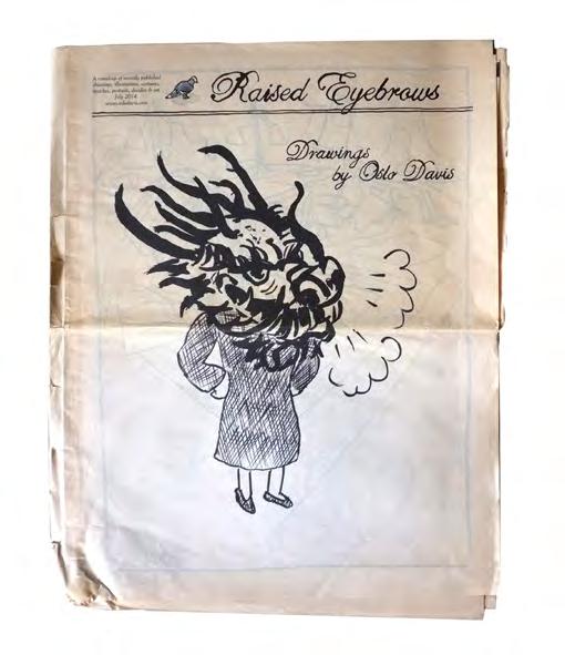 Opposite Top Left Front cover of Raised Eyebrows #1 (newspaper version), 2014, author, illustrator and designer Oslo Davis, private collection.