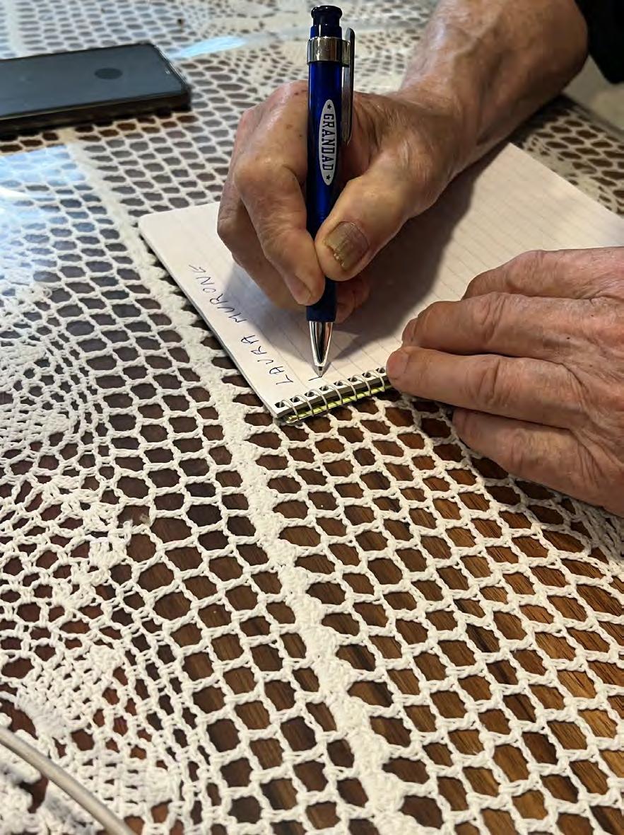 Left Grandfather writing notes on his extended family, 7 October 2024, photographer Mia Murone