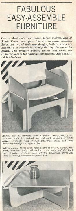 3 See ‘Fabulous EasyAssemble Furniture’, Australian House and Garden, August 1973, 116 and ‘Their furniture can be delivered in a flat box’, The Age, 3 April 1973, 12.