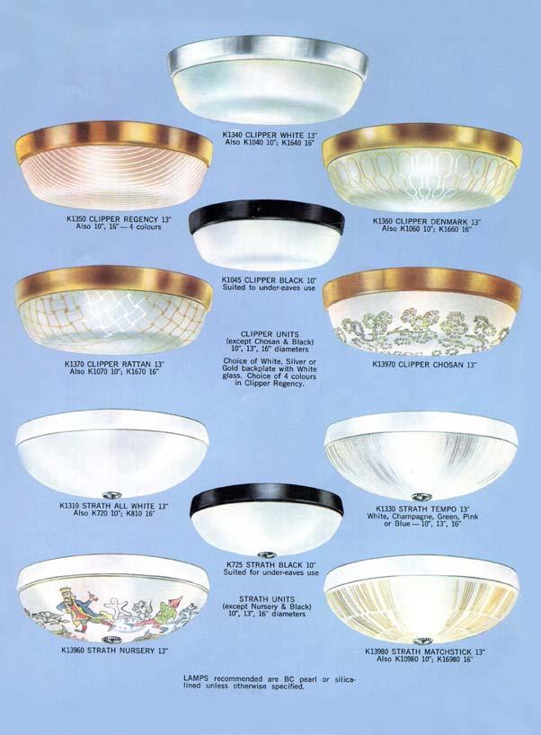 ‘On the ceiling’ light range featured in Kempthorne Book of Lighting, 1960s.