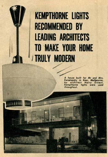 25 ‘Kempthorne lights recommended by leading architects to make your home truly modern’, The Australian Home Beautiful, June 1959, 92.