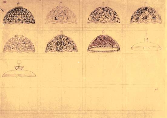 Joyce Coffey, drawing of designs for pendant lamps, diazotype overpainted with gouache, 1960s.
