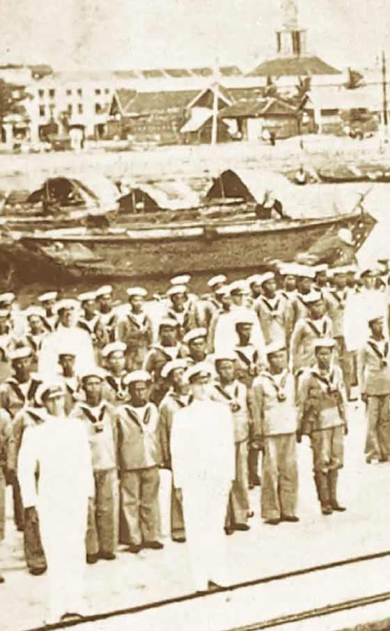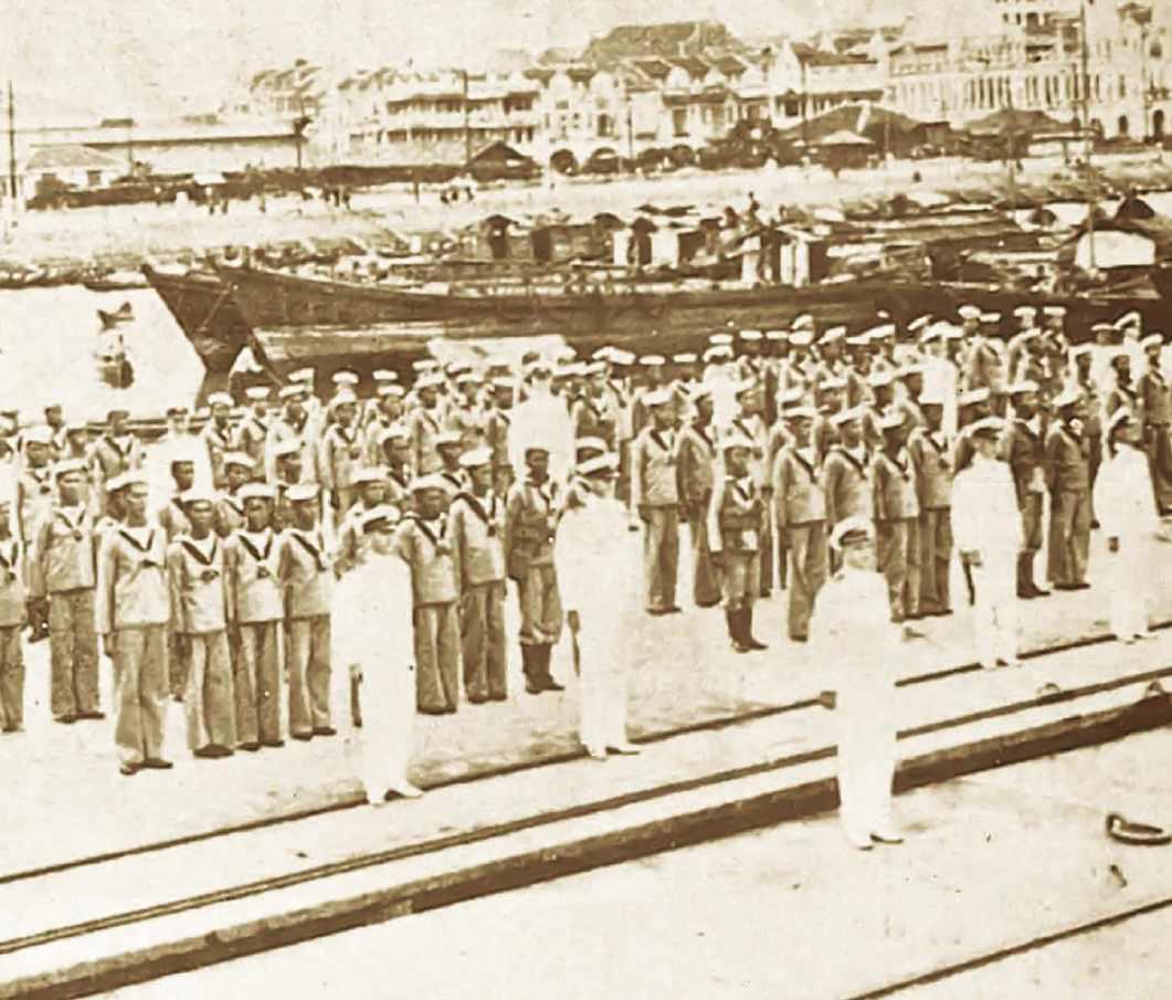 Personnel of the ‘Malay Navy’ at Naval Barracks, Blakang Mati, Singapore, before the disbandment in 1947