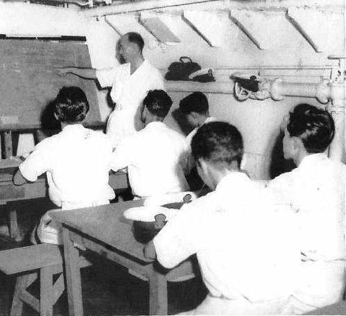 Junior Rates mess onboard a ship used as a makeshift class room due to unavailabilty of training establishmennt