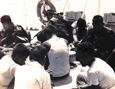 Leading Rate Seaman Ismail bin Hassan, Able Seaman Ali bin Ibrahim, and Able Seaman Lokman Zakaria served aboard HMS KELANTAN when the ship was attacked by Japanese aircraft near Pulau Aruah in December 1941