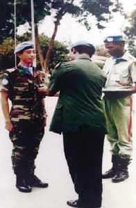 Nation Military Observer in Angola. His bravery was displayed when he was entrusted to lead the patrol team to assess the situation in N’gove and conduct helipad clearance on 6th May 1998. However, he encountered a sudden explosion from an anti-tank mine blast. Despite the mine explosion, he managed to calm the situation and completed the mission.