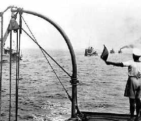 Gunnery training; manning a Lewis gun Morse code training Boat lowering training