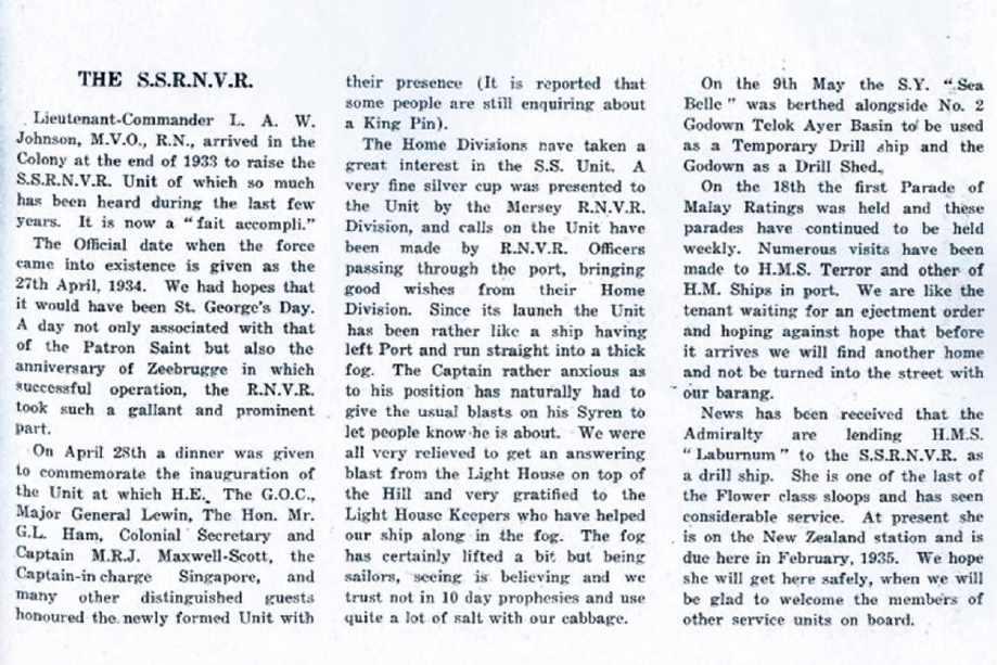 Excerpts from the Straits Settlement Royal Navy Volunteer Reserves [SSRNVR] Year Book; 1934