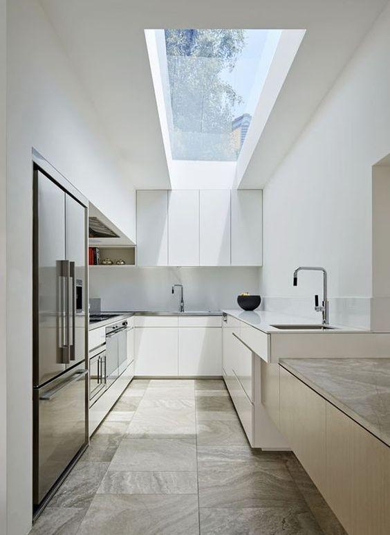 El techo acristalado genera que el ambiente se llene de luz natural. Y la luz artificial junto con los colores claros ayudan a que esta sea más uniforme.