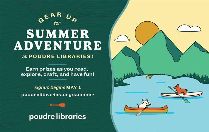 This annual program is now “Summer Adventure / Aventuras de verano!” to reflect a goal to create lifelong readers and learners. Pre-registration begins online or through the Beanstack app on May 1, or pick up a guide at the libraries beginning May 20 along with a sign-up gift such as a free book or seed packet, while supplies last. Then read and explore Bingo style through reading, art, nature and self-care activities. Collect a prize once you’ve completed a Bingo or complete your entire Bingo board (blackout) to be entered in a grand prize drawing at the end of the summer! Find details at poudrelibraries.org.