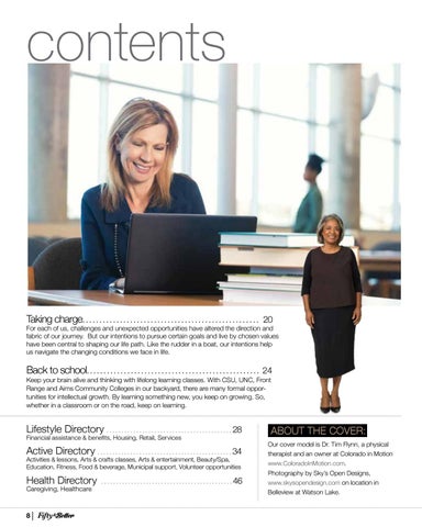 Back to school. . .. . . . . . . . . . . . . . . . . . . . . . . . . . . . . . . . . . . . . . . . . . . . .... 24 Keep your brain alive and thinking with lifelong learning classes. With CSU, UNC, Front Range and Aims Community Colleges in our backyard, there are many formal opportunities for intellectual growth. By learning something new, you keep on growing. So, whether in a classroom or on the road, keep on learning.