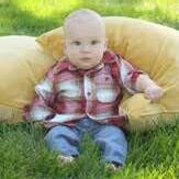 Cover kid Oliver loves giggling with his sister, the mid-century modern aesthetic, bare feet in the grass, tummy time, and developing his sitting skills.