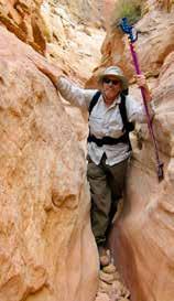DEPART MOAB IN THE WEE HOURS and head west to Little Wild Horse Canyon, where an incredible hike through narrow slot canyons, sometimes requiring a wade through ankle-deep water, awaits you (www.utah. com/destinations/regions/ the-holey-land/little-wildhorse-canyon/). Hike in as far as you like, then it’s back to the car for the short trip to Goblin Valley. The unique rock formations here are breathtaking any time of day, but especially at dusk as they cast shadows across the valley. Travelers of all ages will enjoy climbing the “goblins,” and the park is a perfect place to set up camp for the night (www.stateparks.utah.gov/parks/goblin-valley/).