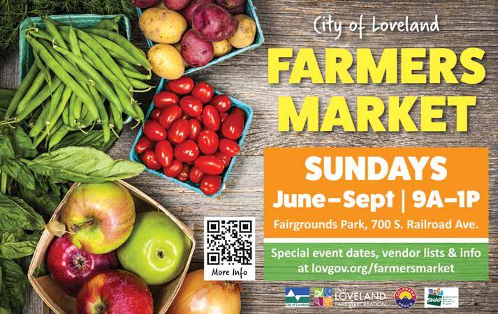 Sundays, 9am–1pm, June 4–Sept. 24 www.cityofloveland.org/farmersmarket