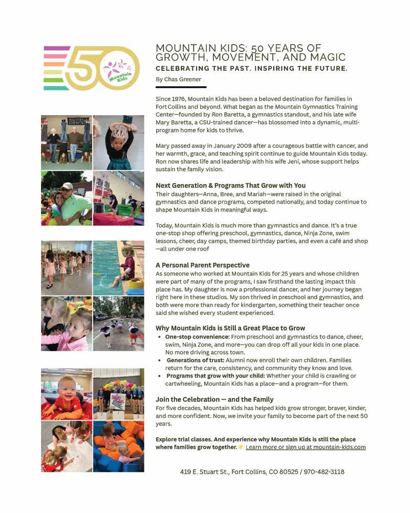 Rocky Mountain Parent magazine is published monthly by Rocky Mountain Publishing, Inc. Publication of this paper does not constitute an endorsement of the products or services advertised. RMP reserves the right to refuse any advertisement for any reason. The opinions expressed by contributors or writers do not necessarily reflect the opinions of Rocky Mountain Publishing. ©2025 Rocky Mountain Publishing, Inc. All rights reserved. Reproduction without express written permission is prohibited.