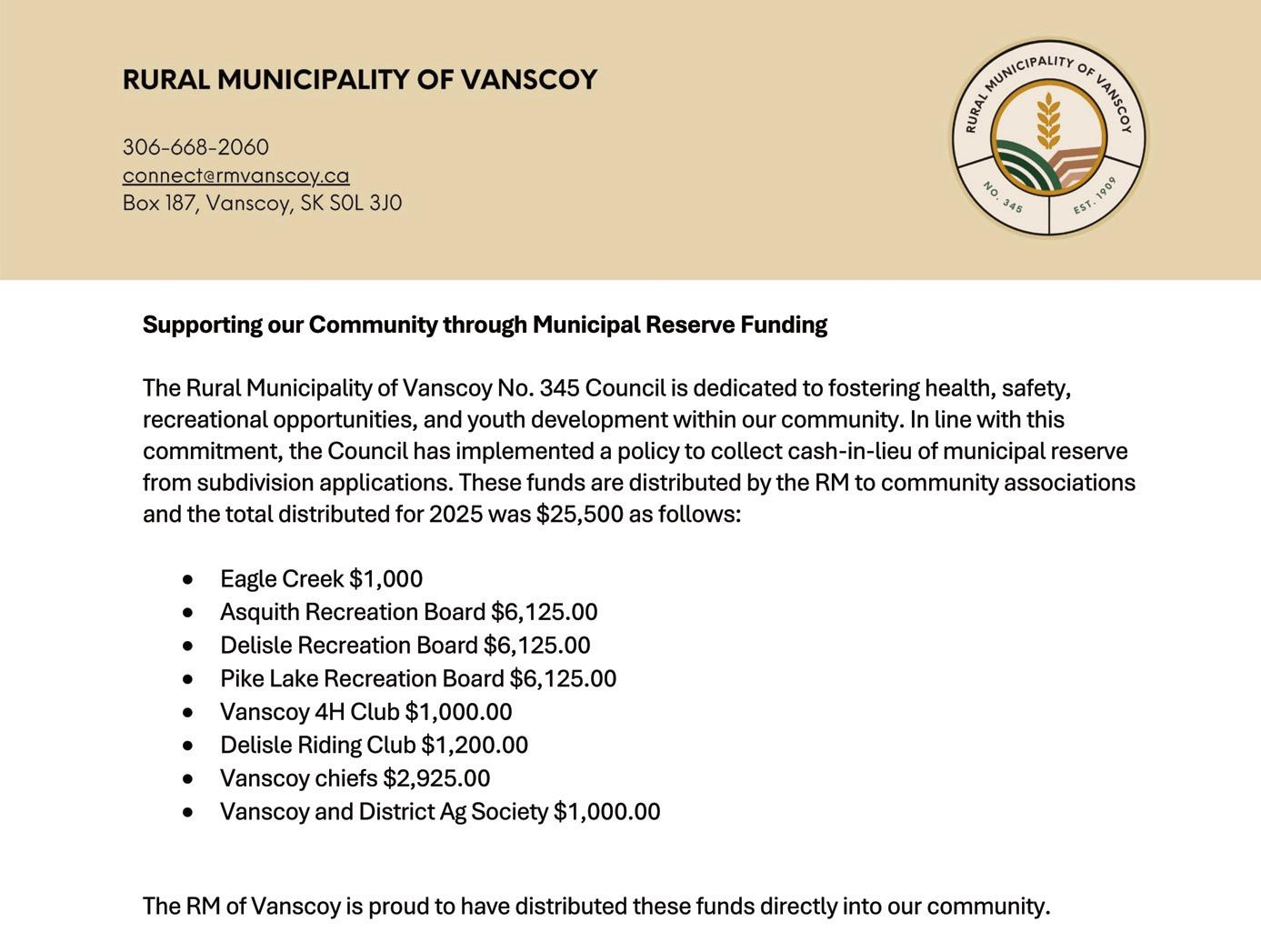 Arelee, Asquith, Borden, Broderick, Conquest, Delisle, Donavon, Dundurn, Glenside, Grandora, Hanley, Harris, Hawarden Kenaston, Kinley, Langham, Laura, Loreburn, Maymont, Milden, Outlook, Perdue, Pike Lake, Radisson, Sonningdale, Sovereign, Strongfield, Swanson, Tessier, Vanscoy, Zealandia