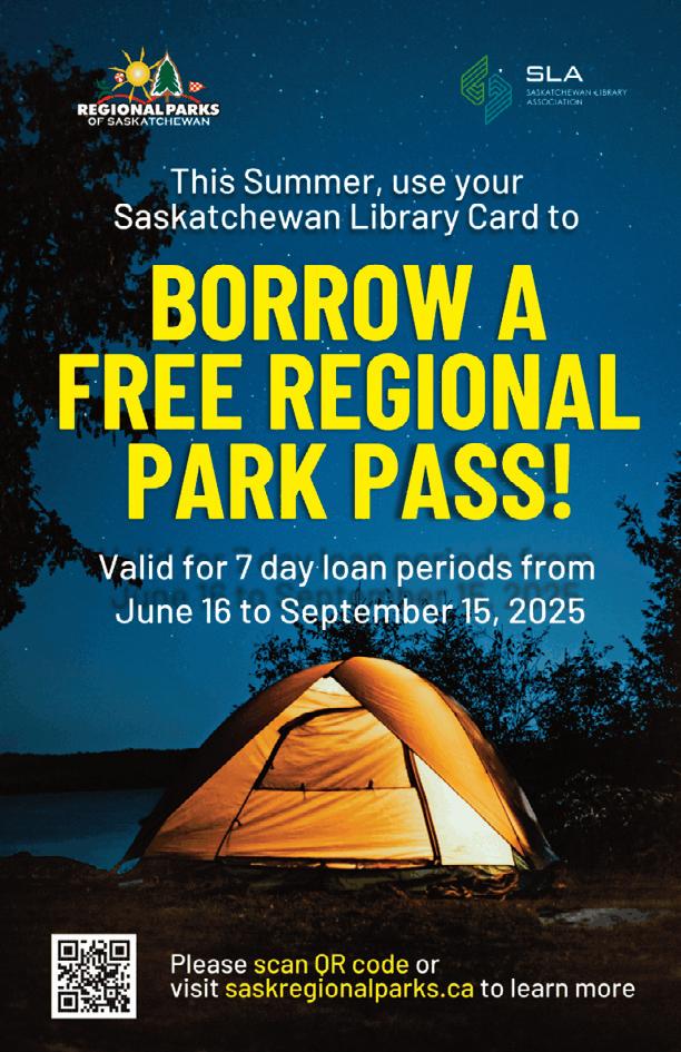 Starting from June 16 to September 15, 2025, anyone with a valid library card can borrow a pass from any Saskatchewan library and enjoy a sevenday loan period with free access to nearly 100 regional parks across the province!