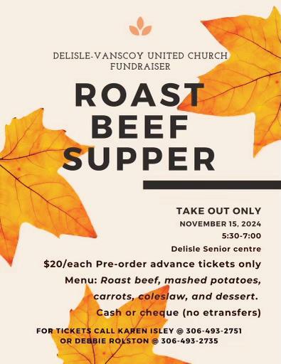 Thttps://www.rafflebox.ca/raffle/vanscoyag to purchase now). Please consider purchasing a ticket to support us and our community programming, we need you! Lastly, save the date for the Ag Society's AGM on Wednesday, Dec. 4, 2024 at the Lodge Room in Delisle (backdoor of the Town Hall). Thank you to all our sponsors and to the Delisle Co-op for sourcing/storing all our turkeys/hams! See you soon.
