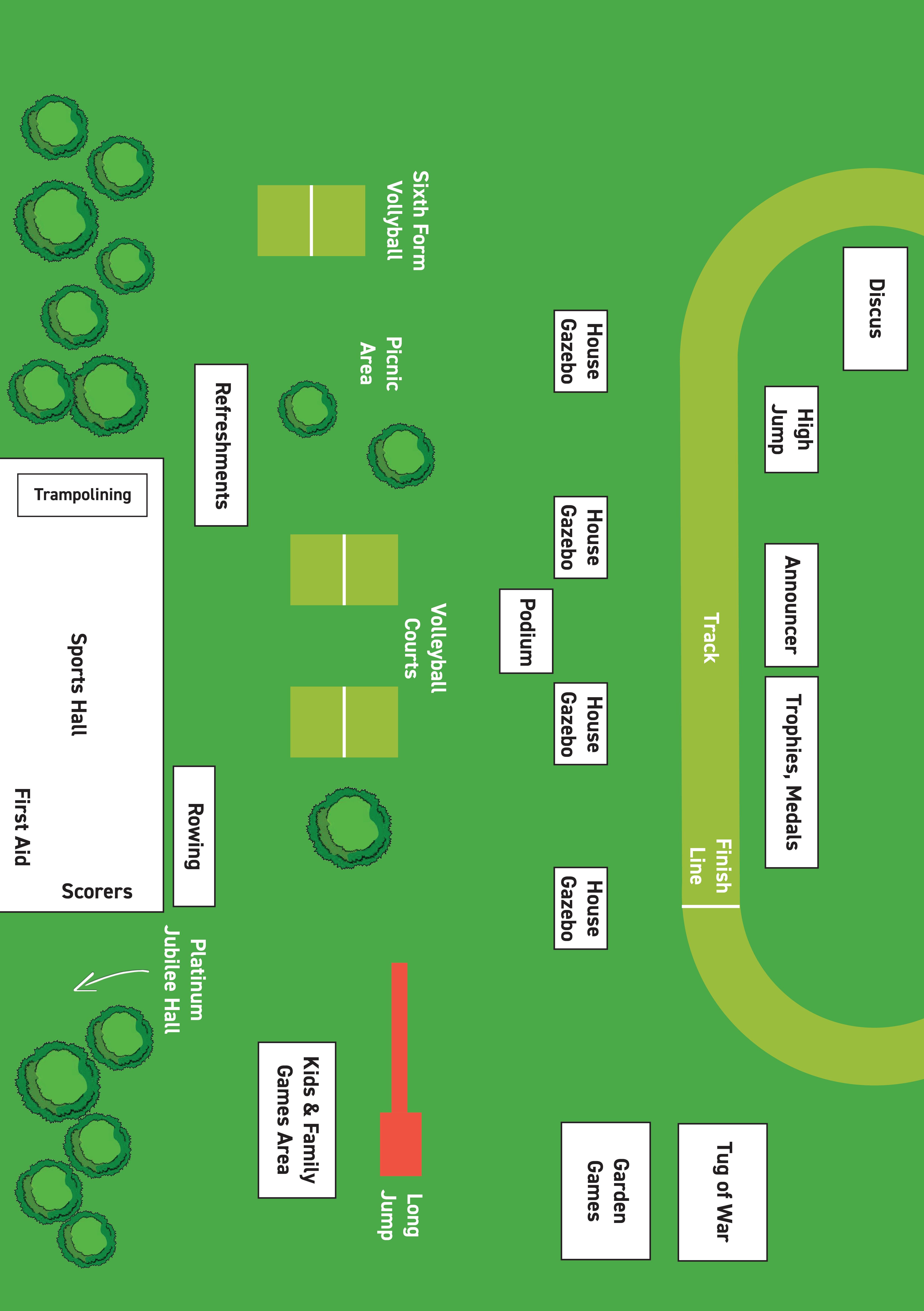 Trampolining will take place in the Gymnasium (Sports Centre). All other events will take place outside on the field.