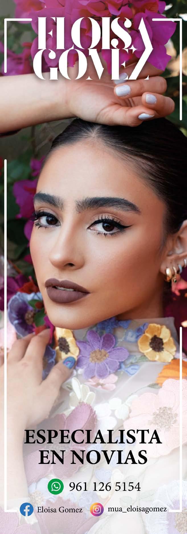 MAQUILLAJE: Carlos Meza: 961 282 0039, Eloisa Gómez: 961 126 5154, Iván Aguilar: 961 638 0422, Carlos Castillo: 961 115 0811, Fabyola Romero: 961 359 3485, Kathia Cruz: 961 262 9311.