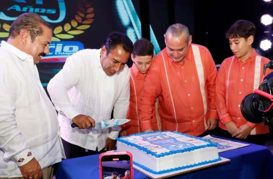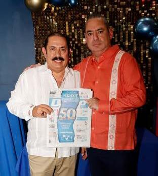 Gerardo y Rogelio Toledo, directivos del Diario de Chiapas, recibieron reconocimientos y muestras de afecto con motivo del 50 aniversario del periódico. La celebración se llevó a cabo a lo grande con una elegante recepción en el salón “Centenario”, a la que asistieron invitados especiales, así como el gobernador del estado de Chiapas, el Dr. Eduardo Ramírez, quien felicitó con entusiasmo el trabajo realizado a lo largo de los años.