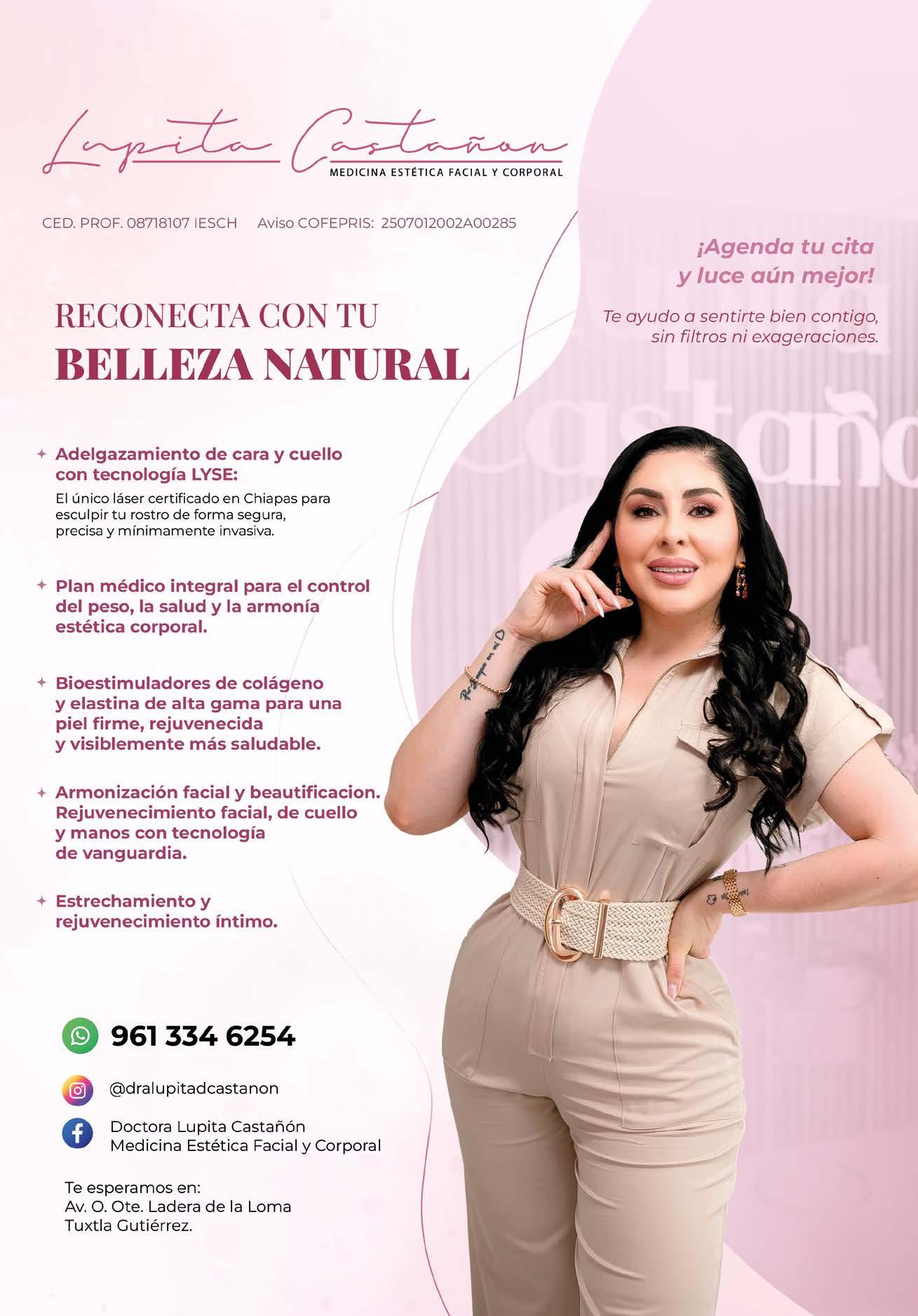 No se pierdan la entrevista de portada, uno de los espacios más esperados. En esta edición de agosto, les presentamos a Guadalupe Ruiz, una empresaria comprometida con el impulso del turismo en nuestra región. Su proyecto, El Andabús, es un servicio de transporte turístico panorámico que busca brindar a visitantes locales, nacionales y extranjeros una experiencia única para conocer Tuxtla Gutiérrez y sus alrededores. Desde recorrer las calles más emblemáticas hasta llegar a lugares icónicos como el Cañón del Sumidero, este tour promete mostrar nuestra capital desde otra perspectiva. No dejes de leer la entrevista y descubrir más sobre esta iniciativa que nos emociona.