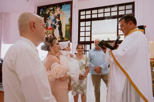 El día comenzó con una emotiva ceremonia en la parroquia Santo Domingo de Guzmán, donde Ana Sofía recibió el sacramento del bautismo. Estuvo acompañada por sus padres, el Dr. José Aguilar y la Sra. Isabel López, así como por su hermana María Paula. También la rodearon sus padrinos, Juan Meza, María López y Mario Mendoza, quienes aceptaron con alegría este importante compromiso.