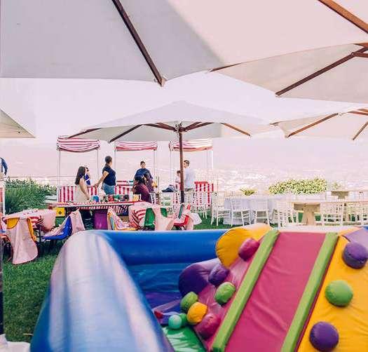Sus amplios salones permiten crear escenarios increíbles, desde aventuras de piratas y astronautas, cuentos de princesas o cualquier temática que tengas en mente. Además, sus hermosos jardines son la opción perfecta para instalar juegos, realizar actividades al aire libre o incluso crear una granja, todo en un ambiente natural con una hermosa vista de la ciudad.
