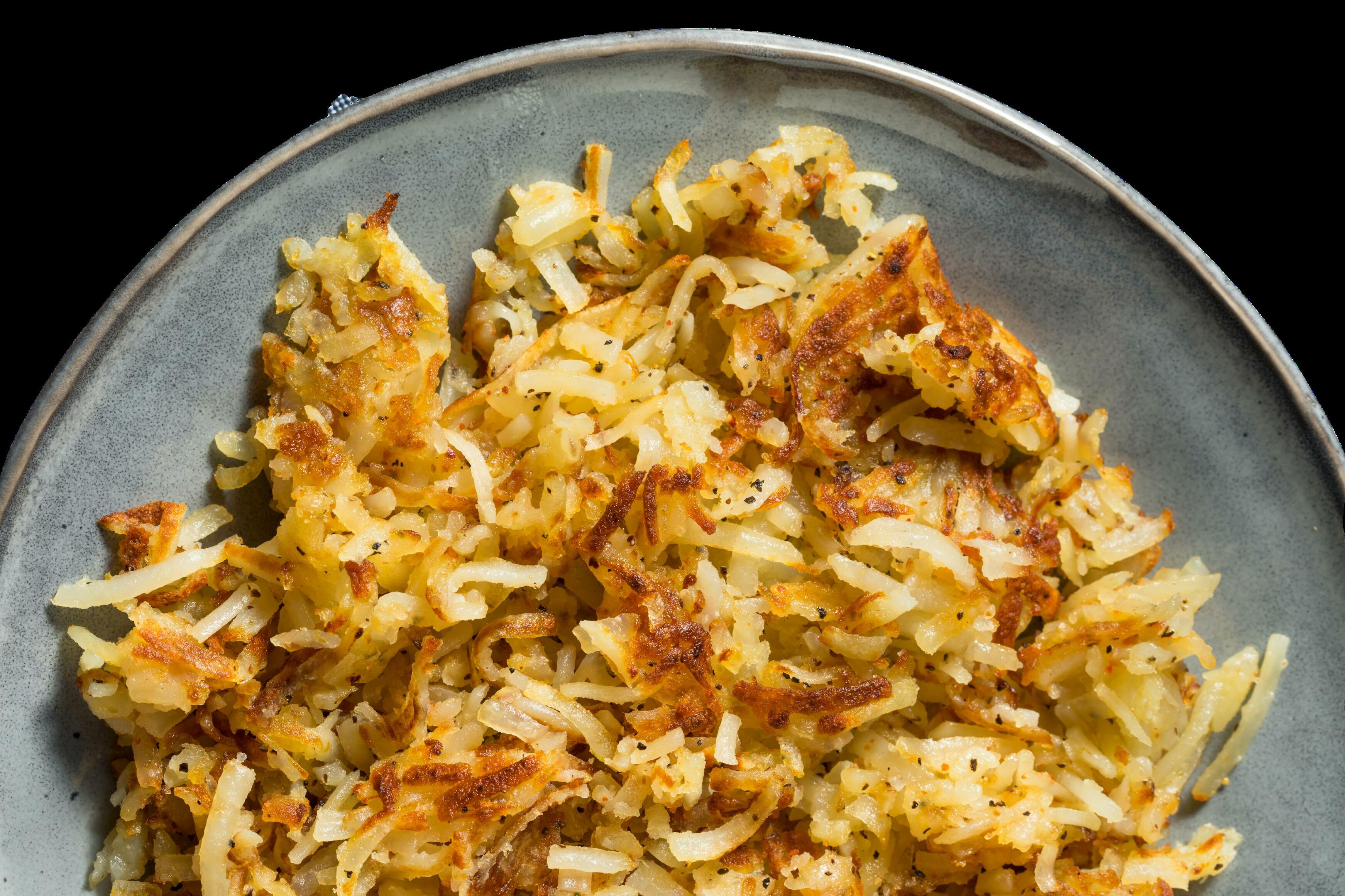 Cover the hashbrowns with water and cook until they are soft Mix the cooked hash browns with salt, pepper, and some of the shredded cheese. In a separate pot. Mix the remaining ingredients and scramble until cooked through. Top with remaining cheese and serve together in a tortilla. Add hot sauce!