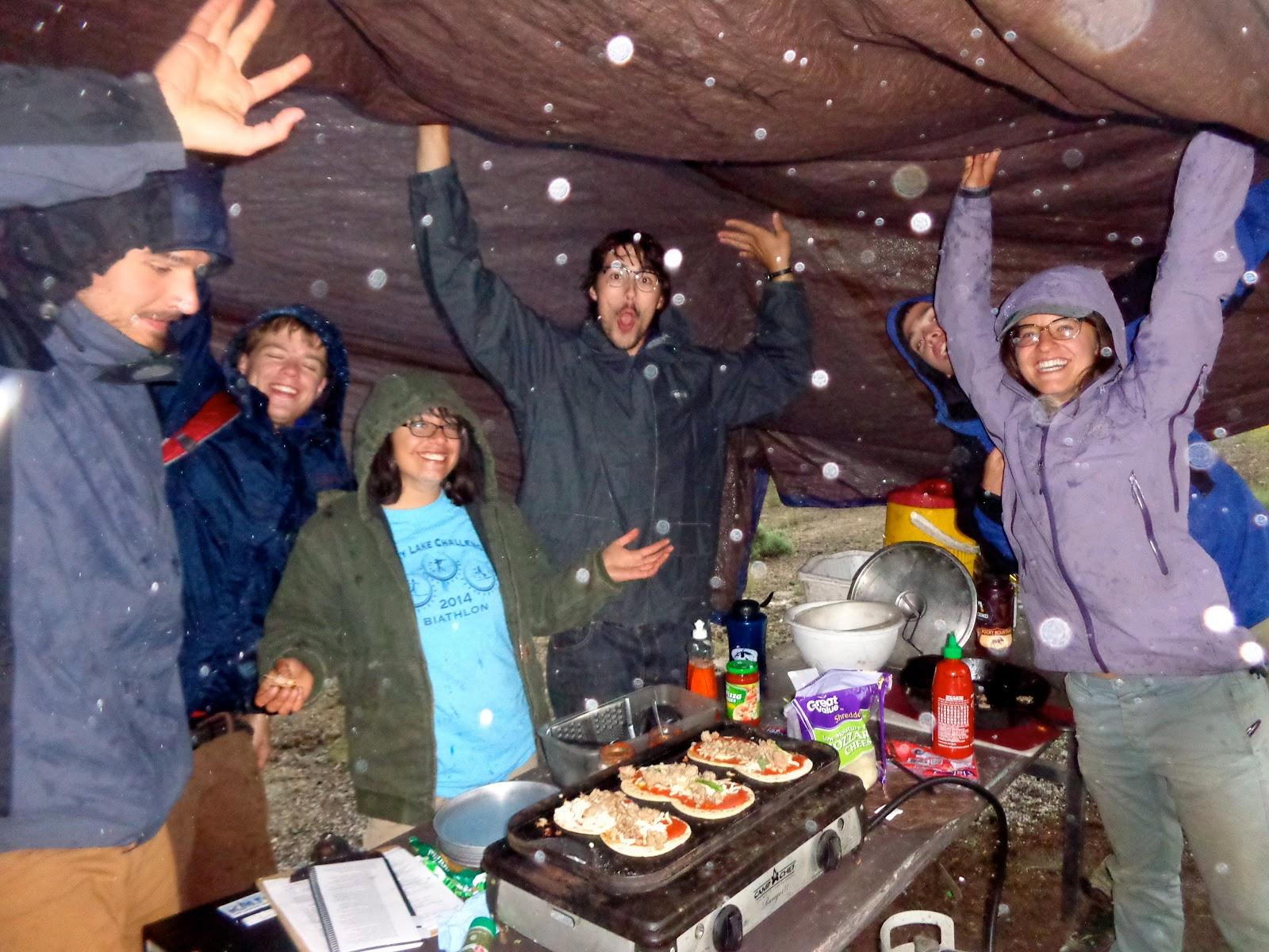 Instructions: Boil half a pot of water balanced precariously on two Whisperlite stoves While waiting, chop the broccoli, including stems The unfortunate soul packing out the trash bag will thank you When water is boiling (finally), add pasta Stir occasionally, if only to make you feel better Meanwhile, grate the cheese and chop the summer sausage into bite sized pieces Begin the process of starting the third Whisperlite Before the pasta is done it should still be a little toothsome add the broccoli and mix well In a small pot, fry up the summer sausage, stirring infrequently to encourage formation of the elusive meat crust. When both the noodles and broccoli have achieved the proper texture, drain the water into the sump hole or a waiting Nalgene. Stir in cheese, ensuring that even the bottom noodles get their share of the cheddar. No one likes a cheese less noodle. If your crew has an absence of vegetarians, stir in the sausage as well. If not, it's just as good on the side.