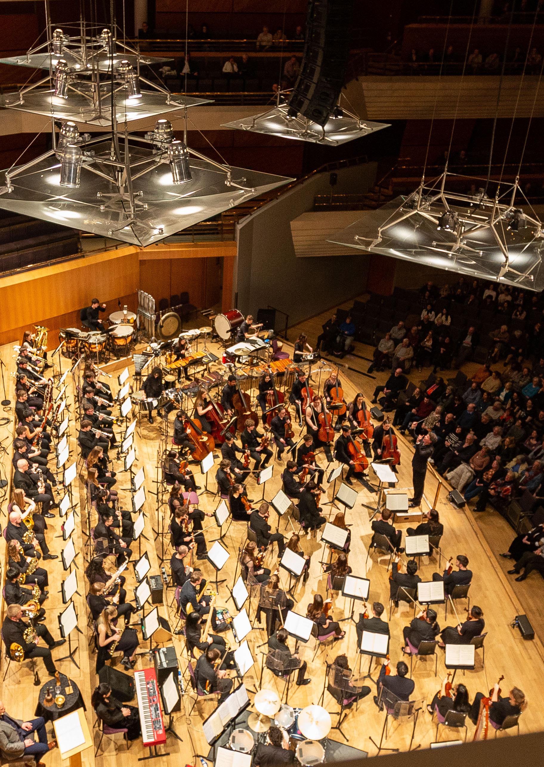 We are one of the UK’s busiest live music venues and our diverse and innovative public performance programme provides an incredible range of solo, chamber, and collaborative opportunities across all genres each year. Flagship ensembles include our Symphony, Chamber, and Opera Orchestras, our renowned Brass Band, our Wind