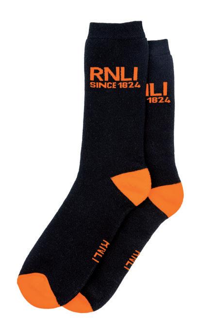 RNLI SINCE 1824 WELLY SOCKS, BLACK/ORANGE