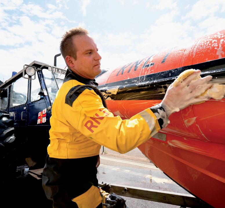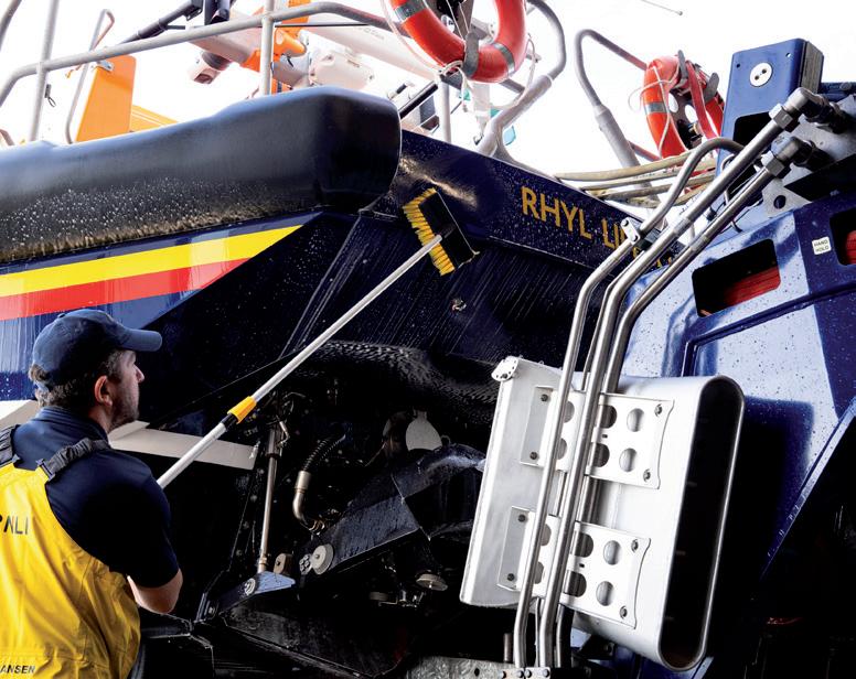 After each launch, RNLI lifeboats are hosed down to help keep them in optimum condition