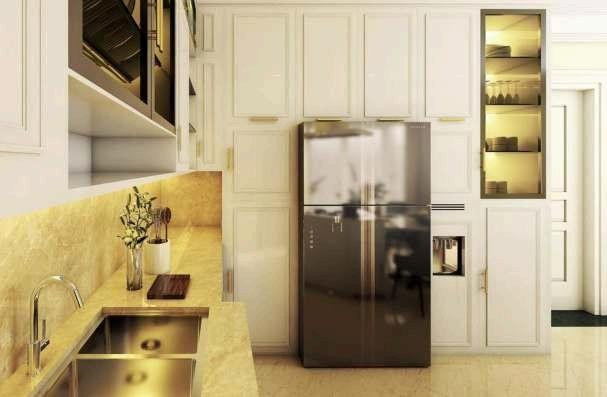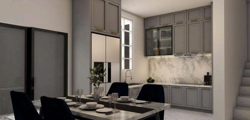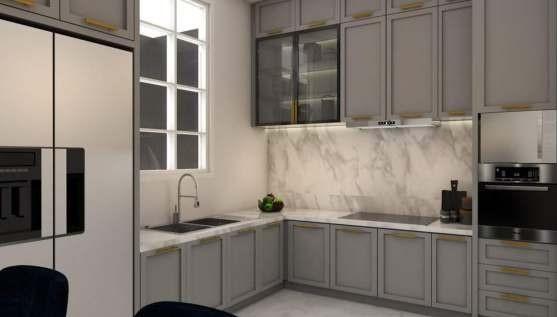 Classic and modern are perfect choice for client kitchen visual look more classy.Profile cabinet with gold handle combination make this design more elegant. No more boring with neutral color in all of client kitchen, but is completed with the right furniture and appliances. The perfect upper cabinet and more compartment at the bottom truly make it look amazing. Moreover, the modern classic design is still a trend that loves artisticvisuals but doesn'tlook monoton.