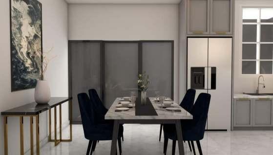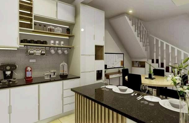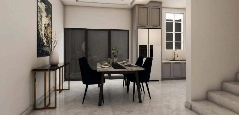 clients love to baking cakes and relax with family. The dry kitchen that connects directly to the family room and dining room is expected to make the house look more presentable and modern. client have a son who used to work in a coffee barista and really loves coffee. For this reason, the concept used is more for the design of coffee tables and kitchens to cook cakes and change the placement of the refrigerator and microwave.