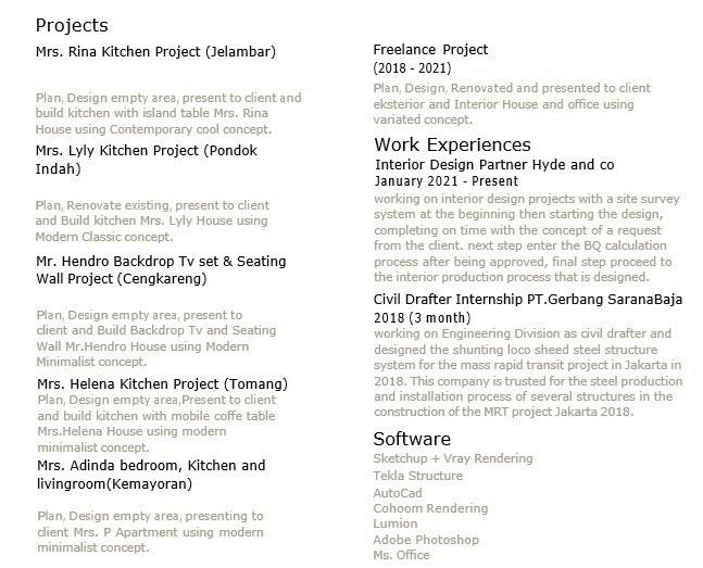 I graduated from the Faculty of Engineering Muhammadiyah Jakarta majoring in Architecture with a 3.22 GPA in 2020.