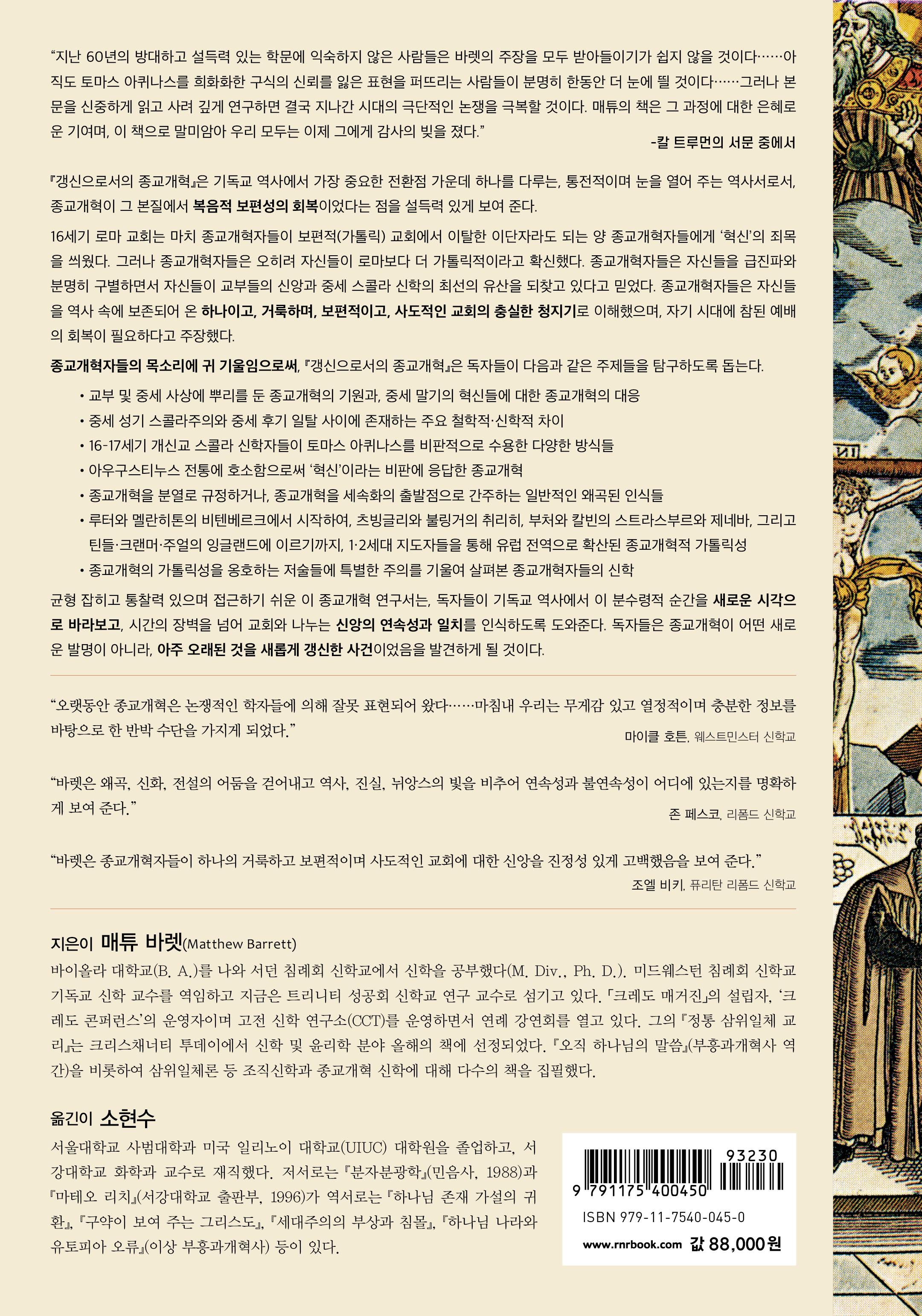 하면서도 평신도와 학생 누구나 쉽게 접근할 수 있는 방식으로 서술되어 있다. 또한 종교개혁 의 신학적 보편성을 강조하는 방식으로 독자들을 종교개혁과 그 여파에 대한 더 깊은 지식으