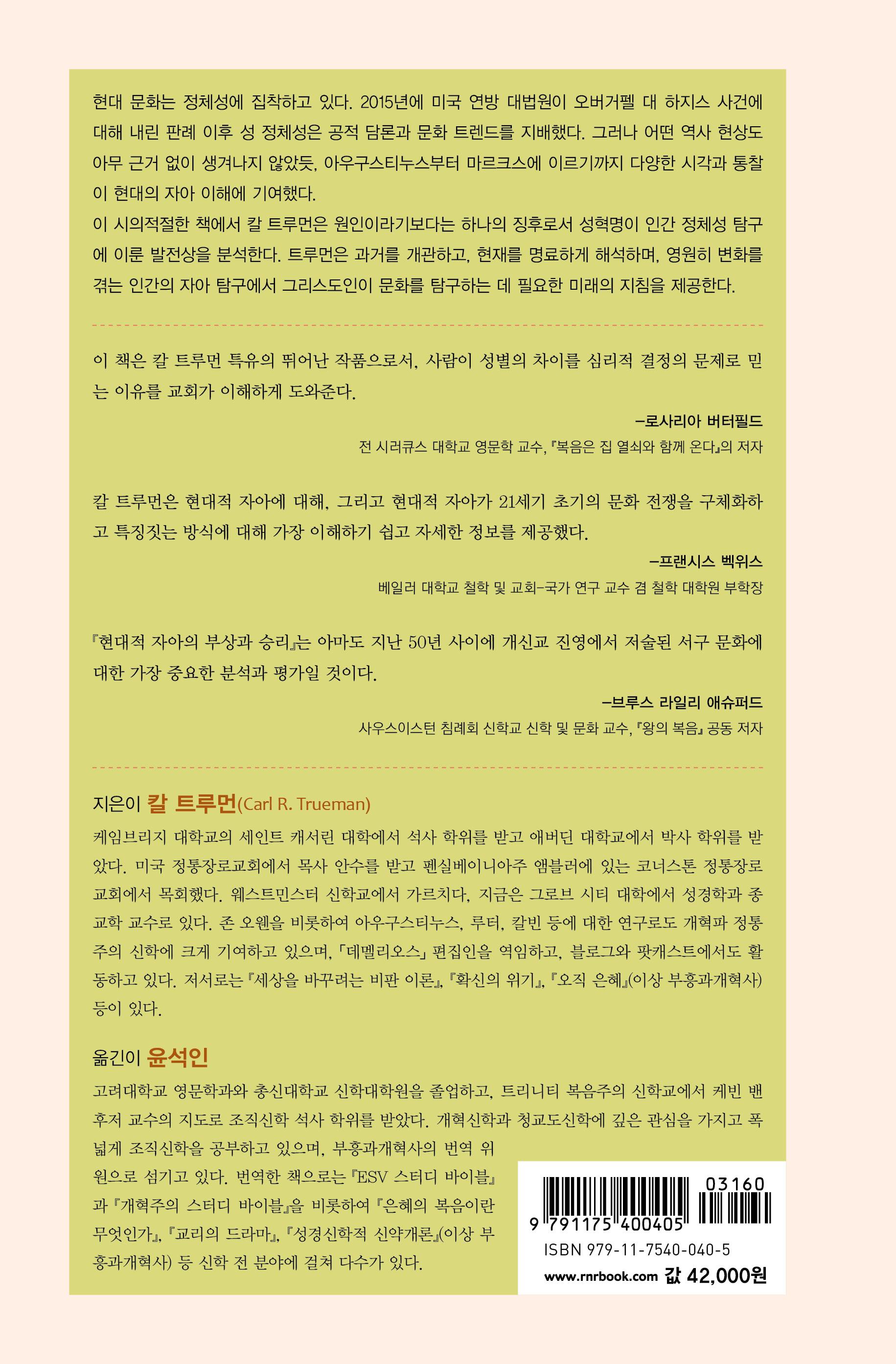 귀찮아하지 않는 독자에게 풍부한 보상을 해 줄 것이다. 기독교인은 자신을 둘러 싼 문화적 관습이 급변하는 현상에 대해 방심해 왔지만, 칼 트루먼은 급진적 사상