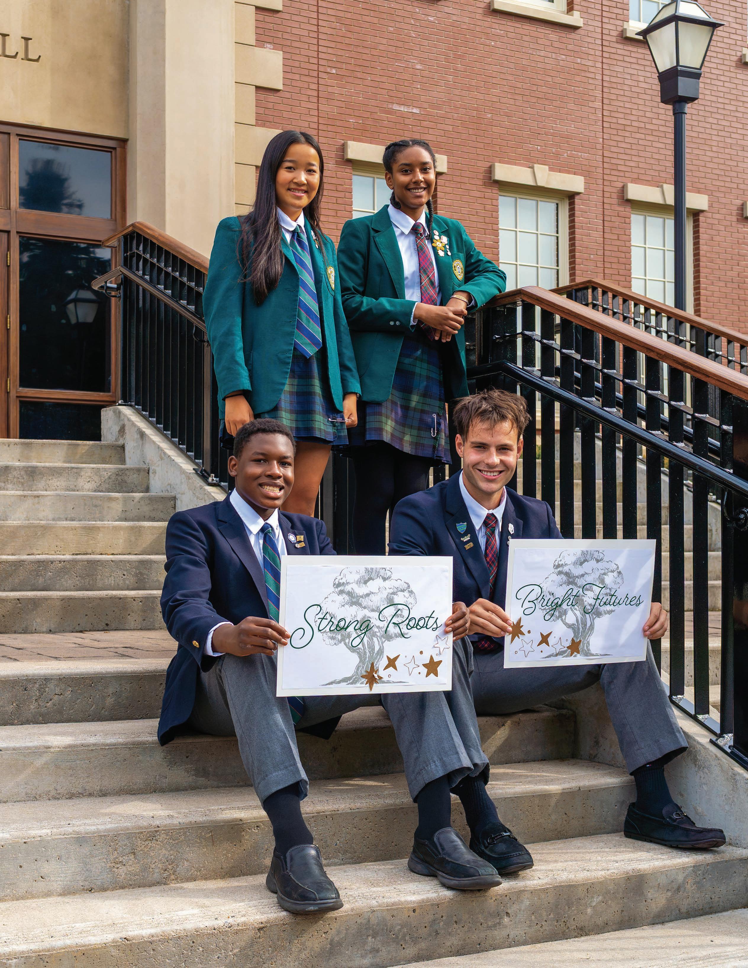 Sharing the theme of the 2025-2030 RNS Strategic Plan are (left to right) Balkissa Chaibou ’26, George Alugo ’30, Amelia Wei ’30, and Zach White ’26.