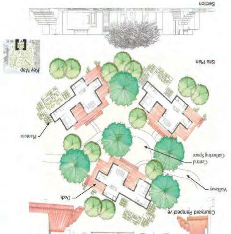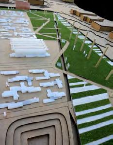 Envisioning a new river town East of Wuhan, China provoked an inten on to build upon ideas of tradi onal courtyard housing and re-purpose exis ng structures within an new entry park - situated between the new high speed rail sta on and the new community. Ques ons were posed: what community meant to the resident farmers, fisherman and ar sans, and choices were ini ated to build upon the people’s sense of tradi on and home and add value to their lives.