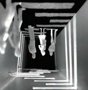 student developed a design vocabulary + language using ink as a medium. On a sheet of white paper (12” x 12” in size) each student applied a series of dots as drips of India ink in an arrangement/pa ern to envision a formed/enclosed space. The work was considered as propor oned but scaleless. The dots formed posi ve + nega ve spaces on the paper but did not represent a par cular object or directly relate to a known spa al type or form. The work was meant to be purposeful and evolve. The ul mate composi on was developed using the dots as a design language. Each student created one (1) drawing to represent the following six (6) aspects: 1. Density, 2. Opacity, 3. Formality, 4. Permeability, 5. Layering, 6. Ac va ng. SECTION