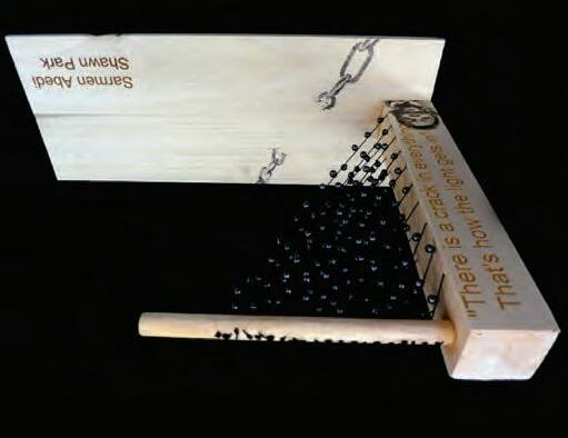 Prior to designing a memorial, the studio was inspired to deeply think about how designers seek to represent meaning as experience. The studio was assigned a list of collec ve values. This, compiled, should emerge as a physical language for developing meaning. Each student represented this value by crea ng a piece that defines and reveals its meaning, without literally represen ng it. This inves ga on was less about the “it” and more about the experience and explored how one’s values and experiences manifest in the work. The explora on lead to insights and connec ons that became crucial in the studio inves ga on /process of the Na ve American Veterans Memorial Design Compe on sponsored by the Na onal Smithsonian Museums.