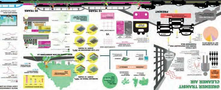 A secocond-year studio intererlaced street and transport as a coming n ling n concept - as an equitable canvas where both s street and transport collide, and human/ecologicacal experience occurs. The students devel e oped an to communicate a vision a stance. Each student team a communicated, data lananguage to c communicate ideas throug u h an inf n ographic E Each vision was site reconaissance and a eld trip case inves on brainstormed ideas to convey a vision in Los Calif i ornia - ideas that their urban desig i n es n